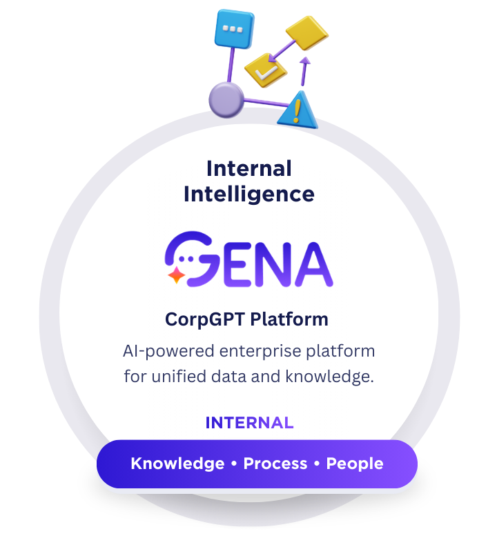 GENA คือ CorpGPT Platform ที่เชื่อมโยง ข้อมูล องค์ความรู้ และบริบทขององค์กร เข้ากับ AI เพื่อเพิ่มประสิทธิภาพการทำงานในระดับ Enterprise