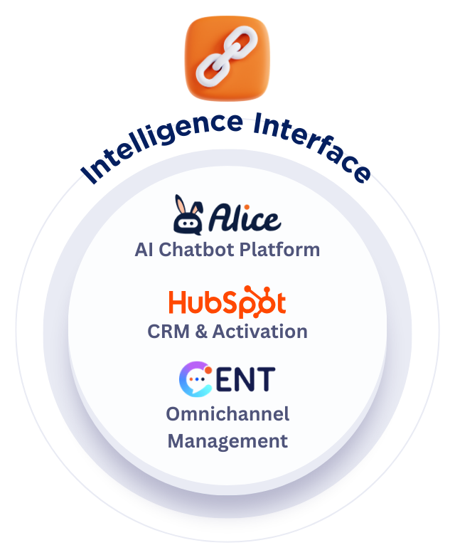 Intelligence Interface คือชั้นกลางที่เชื่อม External และ Internal Intelligence เข้ากับ Customer Interaction และ Business Execution