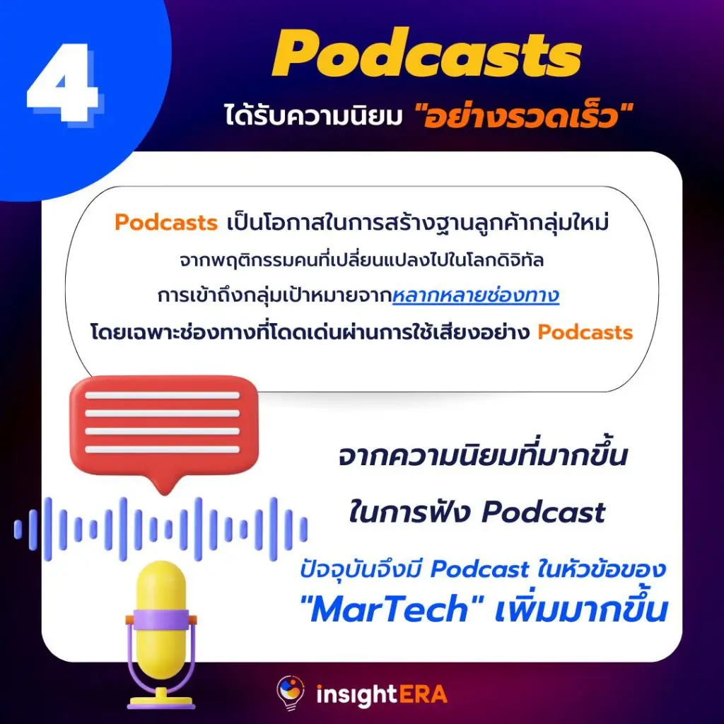 4.Podcasts ได้รับความนิยมอย่างรวดเร็ว