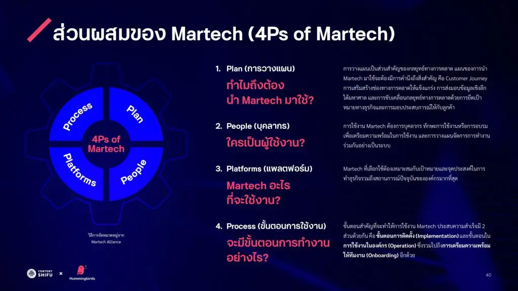 เรามาดูกันว่า องค์ประกอบหลักของทั้ง 4Ps สำหรับการใช้งาน Martech เพื่อพัฒนาองค์กร จะมีอะไรที่ธุรกิจสามารถนำมาปรับใช้ได้บ้าง