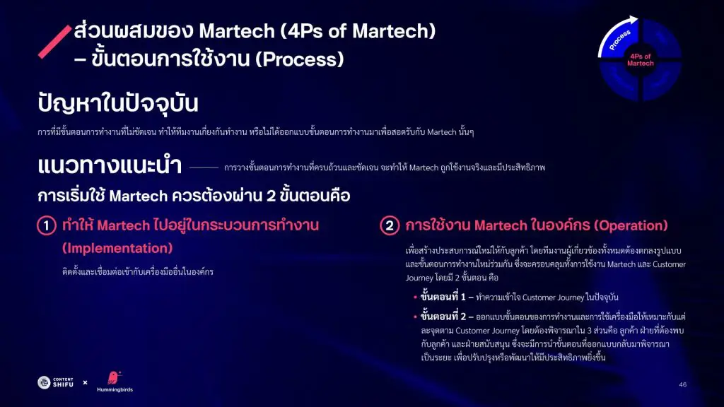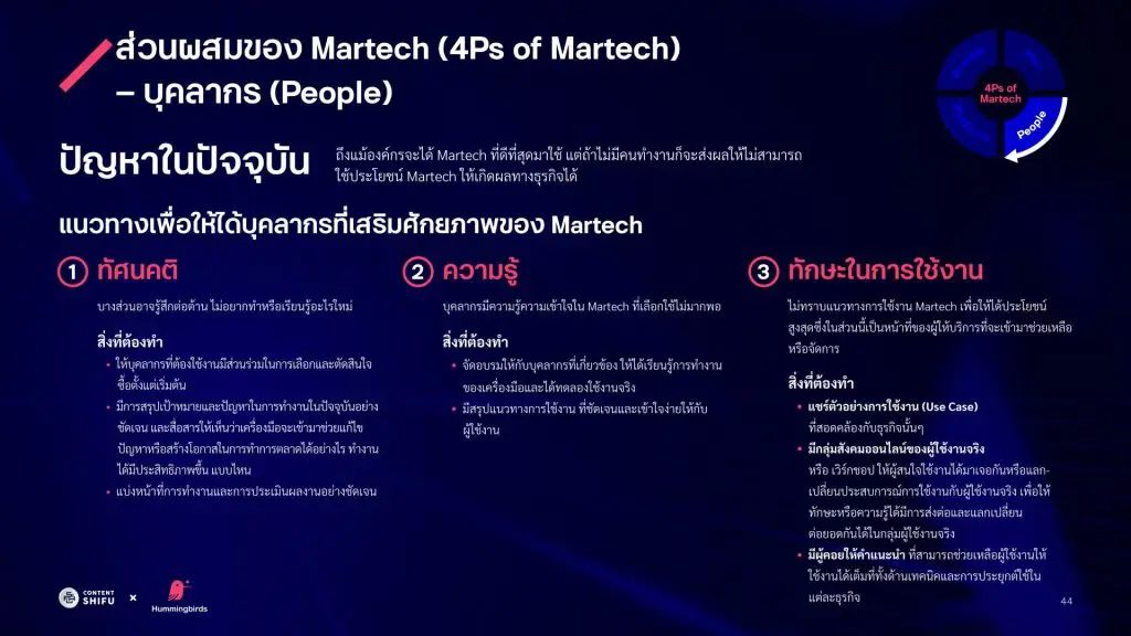 จากผลสำรวจพบว่า องค์กรเกือบครึ่งที่ใช้ MarTech ในปัจจุบัน และยังทำเรื่องของ 4Ps ได้ไม่ดีนัก โดยเฉพาะด้าน People และ Process
