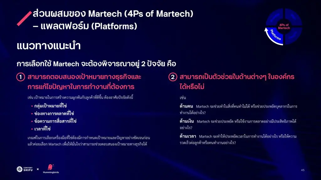 การเลือกใช้ Martech ต้องพิจารณาอยู่ 2 ปัจจัย คือ