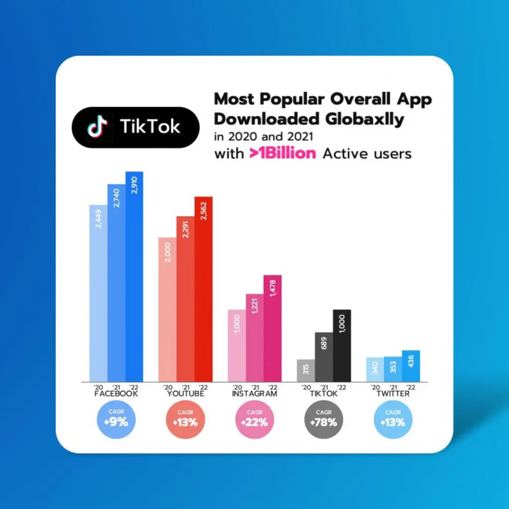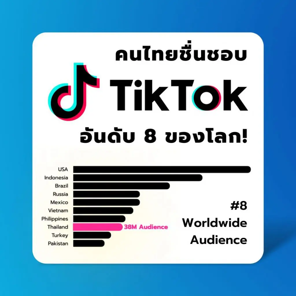 ซึ่งจากสถิติปี 2022 ประเทศไทยมีบัญชีผู้ใช้งาน TikTok มากถึง 38 ล้านคน ทำสิถิติเป็นอันดับ 8 ของโลกเลยทีเดียวค่ะ