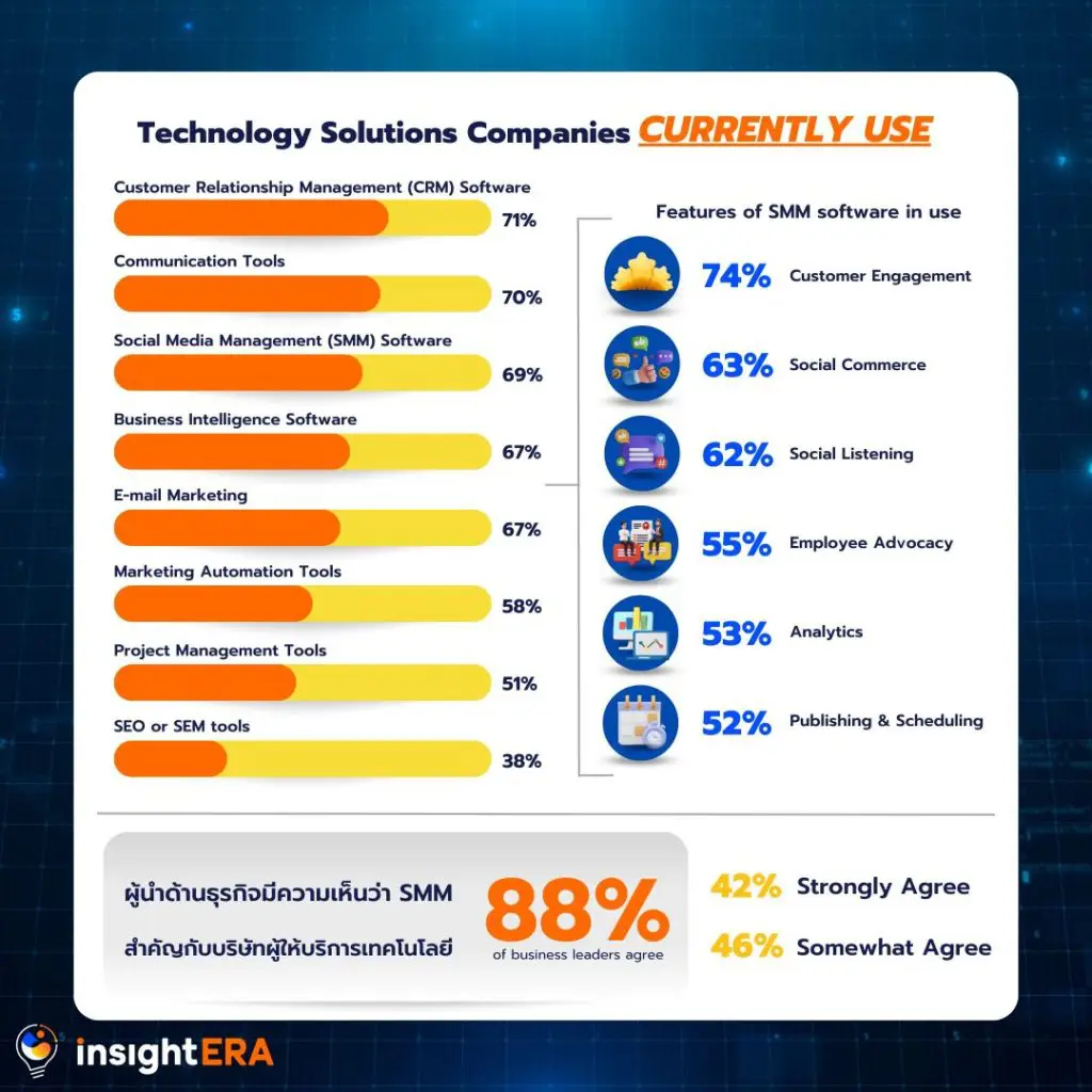 จากผลการวิจัยของ Harris Poll ร่วมกับ Sprout Social : ได้ทำการสำรวจนักการตลาดกว่า 750 คน ในด้าน Social Media Marketing, Customer Care and Communications ของธุรกิจในสหรัฐอเมริกาและอังกฤษ เพื่อทำความเข้าใจวิธีลงทุน แนวทางการวางงบประมาณการทำ Digital Marketing และผลกระทบที่มีต่อองค์กร โดยมีผลการวิจัยดังนี้