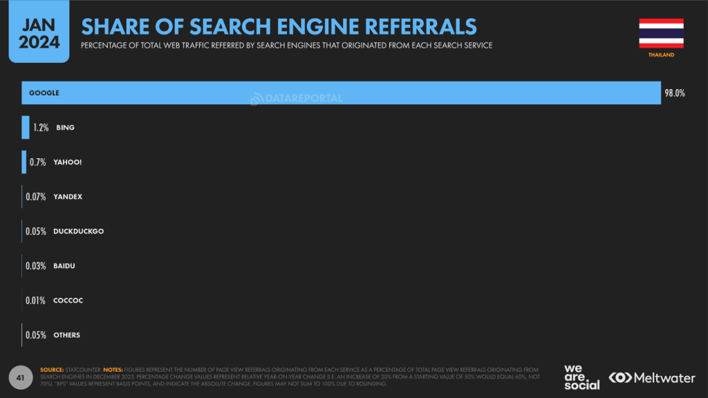 ตามมาด้วย Bing 1.2% และ Yahoo 0.7%