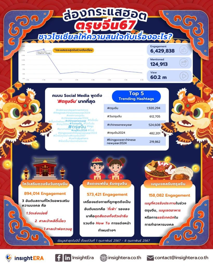 ชาวโซเชียลมีเดียมีการพูดถึงเทศกาลตรุษจีน Engagement รวมกว่า 6,429,838 Engagement