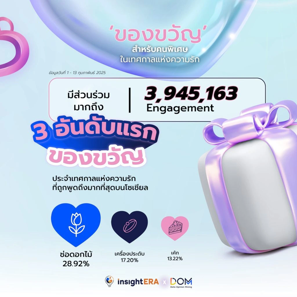 ‘ของขวัญ’ ในวันวาเลนไทน์กลายเป็นหัวข้อที่คนโซเชียลให้ความสนใจอย่างมาก โดยผู้คนร่วมแชร์ไอเดียและโพสต์แนะนำของขวัญที่จะมอบให้คนรักในเทศกาลแห่งความรักนี้ ซึ่งได้รับความสนใจ ถึง 3,945,163 Engagement