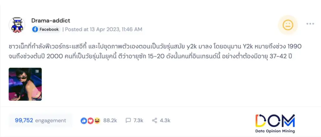 โดยเฉพาะกลุ่มคน Gen Y ที่คุ้นเคยกับช่วงสมัยนั้น และ Gen Z ที่มีความสนใจแฟชั่นในอดีต เพราะชื่นชอบความแตกต่าง แต่ก็สามารถนำมาประยุกต์กับแฟชั่นปัจจุบันได้ จน Y2K กลายเป็นกระแสบนโลกออนไลน์ นอกจากเรื่องของแฟชั่น ก็ยังรวมไปถึงการถ่ายรูป ไลฟ์สไตล์ เพลงหรือสื่อต่างๆ อีกด้วย