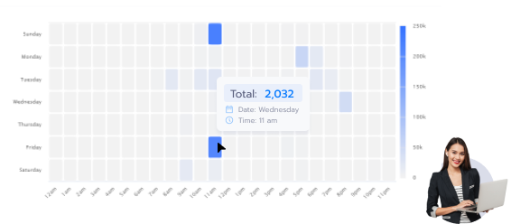 ตารางแสดงช่วงเวลาที่การโพสต์จะได้รับความสนใจมากที่สุด