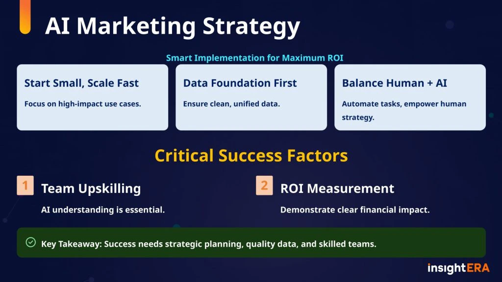 ควรใช้ AI ในการทำงานอัตโนมัติ (Automate Tasks) แต่ยังคงต้องมีมนุษย์เพื่อเสริมกลยุทธ์ (Empower Human Strategy) มนุษย์ยังจำเป็นต้องตรวจสอบว่างานที่ AI ทำกลับมานั้นถูกต้องหรือไม่