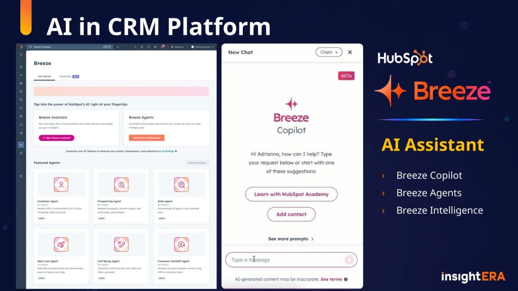 เมื่อก่อนการตัดสินใจขายหรือพูดกับลูกค้าต้องใช้วิจารณญาณแอดมิน แต่ปัจจุบันแพลตฟอร์ม CRM (เช่น HubSpot) มี AI Build-in ที่ทำหน้าที่คล้าย “เพื่อนคู่คิด” ช่วยสรุปข้อมูลลูกค้า แนะนำสินค้าที่น่าสนใจ และสามารถสั่ง AI ด้วยการแชทเพื่อสร้าง Workflow อัตโนมัติสำหรับแคมเปญได้