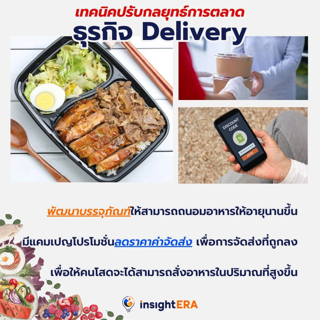 สำหรับ Delivery นั้นไม่เพียงแต่ได้รับความนิยมในกลุ่มคนไม่มีเวลา แต่รวมถึงคนโสดด้วยเช่นกัน เพราะช่วยในการอำนวยความสะดวกให้สามารถสั่งสินค้าได้อย่างง่ายดาย แต่หากมีการสั่งอาหารในจำนวนน้อย อาจทำให้ไม่คุ้มค่าจัดส่ง ผู้ประกอบการจึงจำเป็นต้องมีการพัฒนาบรรจุภัณฑ์ให้สามารถถนอมอาหารให้อายุนานขึ้น โดยคุณภาพยังคงเดิมมากที่สุด เพื่อที่คนโสดจะได้สามารถสั่งอาหารในปริมาณที่สูงขึ้น หรืออาจมีแคมเปญโปรโมชั่นลดราคาค่าจัดส่ง เพื่อการจัดส่งที่ถูกลง