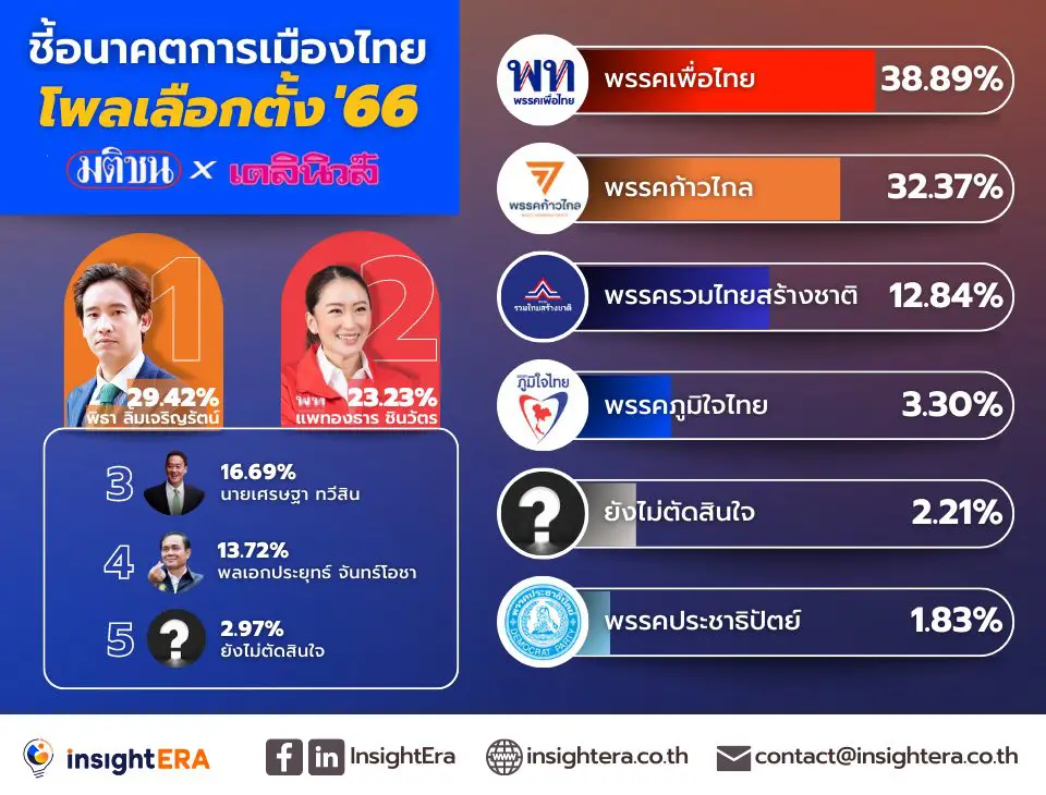 วันนี้อินไซท์เอรา จะพาทุกคนมาดูผลโพลและวิเคราะห์ประเด็นที่น่าสนใจกันนะคะ ว่าแคนดิเดตท่านไหนหรือพรรคไหนที่ได้รับความนิยมมากที่สุด