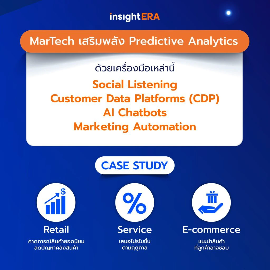 Predictive Analytics เป็นเครื่องมือสำคัญที่ช่วยให้ธุรกิจเข้าใจลูกค้าและทำนายพฤติกรรมในอนาคตได้อย่างแม่นยำ ด้วยการสนับสนุนจาก Martech ธุรกิจสามารถสร้างกลยุทธ์การตลาดที่เหมาะสม ตอบสนองความต้องการของลูกค้าได้ตรงจุด และเติบโตอย่างยั่งยืนในโลกที่เปลี่ยนแปลงอย่างรวดเร็ว