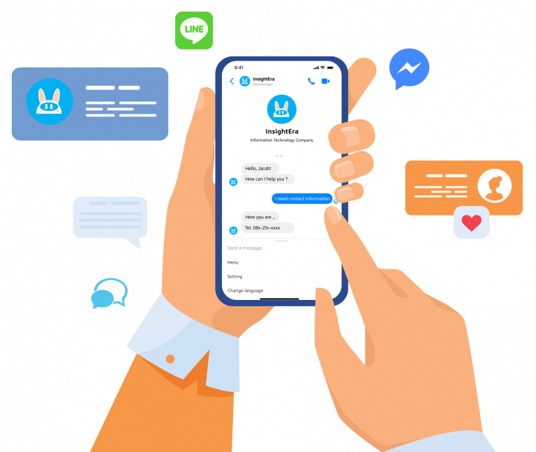 พร้อมตอบรับ และให้บริการลูกค้าตลอด 24 ชั่วโมง ด้วย Chatbot ที่เข้าใจภาษาไทย 100% สามารถเรียนรู้เพิ่มเติมได้ด้วย AI Machine Learning ให้คุณไม่พลาดทุกโอกาสในการขาย และบริการ