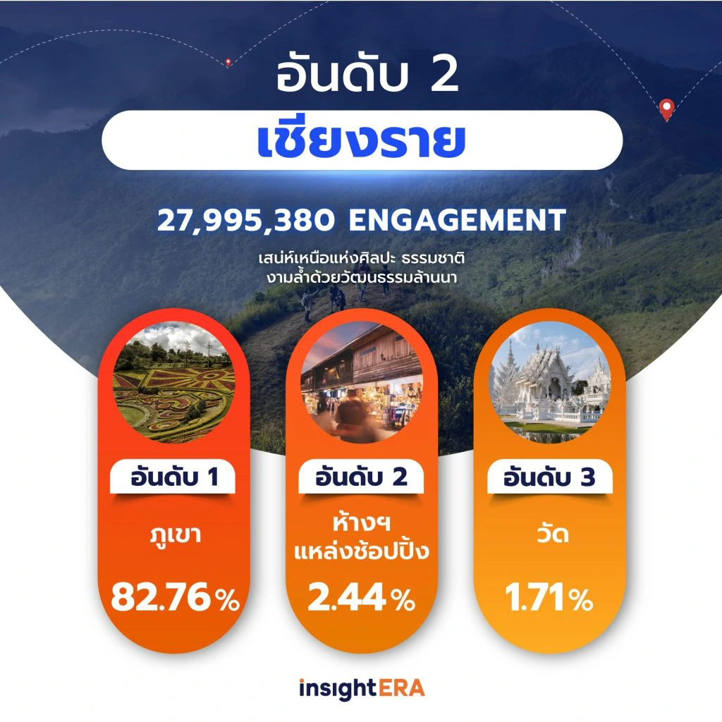 สถานที่ท่องเที่ยวประเภท ‘ภูเขา’ ที่คนพูดถึงมากที่สุดในโซเชียลสำหรับ ‘เชียงราย’ คือ
